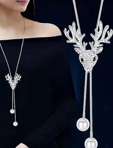 Collar con colgante de copo de nieve para mujer: elegante joya de cadena larga con detalles de cristal para damas, moda de invierno y regalo de Navidad.