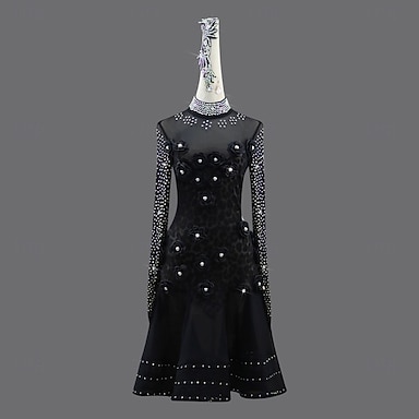 Baile Latino Vestido Pétalo Cristal / Cristal Detalles con Perlas Mujer Fiesta Rendimiento Manga Larga Licra