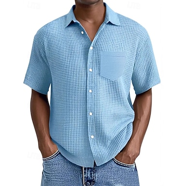 Hombre Camisa Camisa de gofres Camisa casual Azul Piscina Negro Blanco Verde Claro Rosa Manga Corta Plano Cuello Camisero Casual Diario Frunce Ropa Elegante Moda Casual