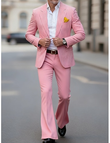Hombre Blazer + pantalón de vestir chaqueta Trajes Negocio Fiesta de Cóctel Fiesta de Boda 2 Piezas Moda Casual Primavera Otoño Mezcla de Algodón Raya Bolsillo Botones Cómodo Botonadura Simple