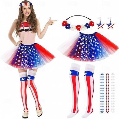 250º Aniversario de EE. UU. Disco Años 80 Enagua Tutu Debajo de la falda con accesorios Disfraz Mujer Carnaval 2026 Disfraz de carnaval Víspera de Todos los Santos Carnaval Mascarada Día de la