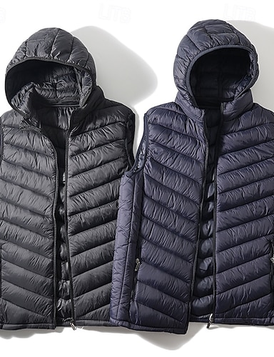 Hombre Chaleco acolchado Chaleco Vacaciones Diario Cita Moda Casual Otoño invierno Bolsillo Poliéster Mantiene abrigado Cómodo Color sólido Cremallera Con Capucha Ajuste regular Negro Azul Marino