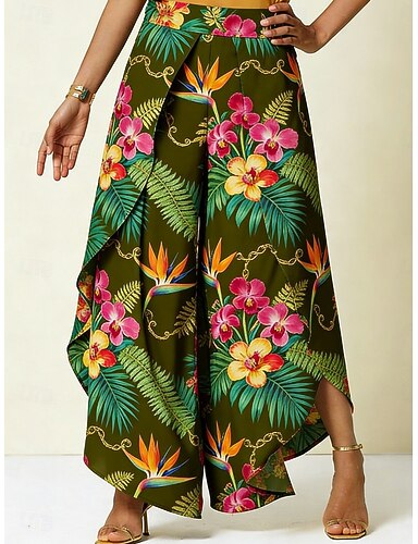 Mujer Perneras anchas Pantalones Pantalones casuales Vacaciones Básico Casual Longitud total Media cintura Floral Graphic Multi capa Asimétrico Comodidad Suave Cómodo Rígido Diario Exterior Vacaciones