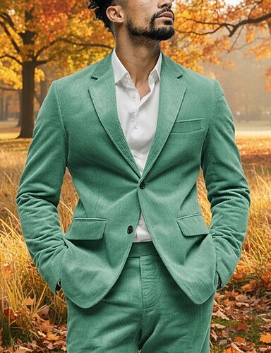 De los hombres Traje de pana Casual Negocio Negro Burdeos Otoño Traje Solapa de Pico Diario Negocios Color sólido A Medida Juego de 2 piezas Recto 2 botones