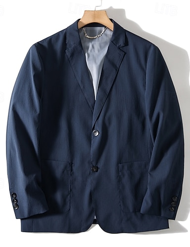Blazer para hombre, chaqueta de seersucker, cuello con muesca, moda informal, blazer de color liso, blanco, caqui, azul oscuro, corte entallado, botonadura sencilla, dos botones