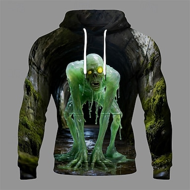 Halloween Hombre Monstruo Sudadera Moda Diario Casual Manga Larga Con Capucha Vacaciones Fiesta Ropa de calle Festival Verde Trébol Correa Bolsillo Estampado Otoño Invierno Diseñador S M L XL 2XL 3XL