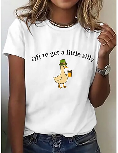 Día de San Patricio Mujer Camiseta Estampado Graphic Animal Vintage Elegante Clásico Manga Corta Cuello Barco Escote Redondo Tops regulares Diario Fin de semana Blanco y gris Blanco Amarillo Verano