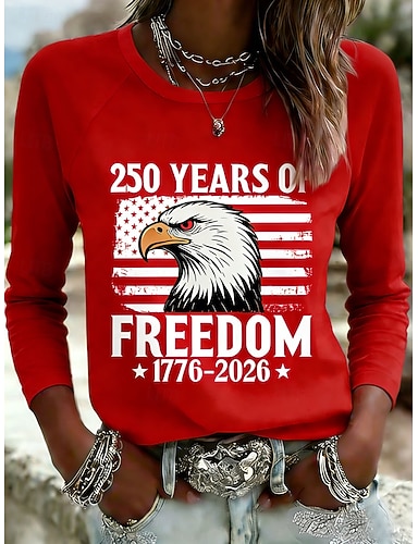 día de la independencia americana Mujer Camiseta Camiseta superior Estampado Graphic Bandera Moda Básico Clásico Manga Larga Cuello Barco Tops regulares Diario Noche Fin de semana Rojo Verano