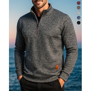 Hombre cima de senderismo Suéter con cremallera de un cuarto Manga Larga Escote Chino Camiseta Al aire libre Ligero Elástico Transpirable Invierno Otoño Cremallera de un cuarto Poliéster Gris oscuro