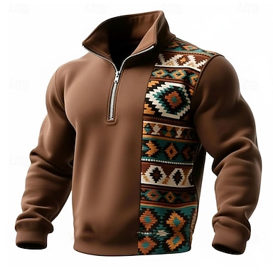 Hombre Geométrico Plaid Tribal Sudadera Deportes Moda Casual Zip Hogar Ropa de calle Trabajo Fiesta Azul Piscina Negro Marrón Verde Trébol Otoño Todas las Temporadas Diseñador S M L XL XXL XXXL