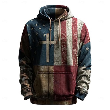 Hombre Cruz Bandera estadounidense Sudadera Moda Casual retro de la vendimia Manga Larga Con Capucha Vacaciones Fiesta Ropa de calle Festival Azul Piscina Rojo Estampado Otoño Invierno Diseñador S M