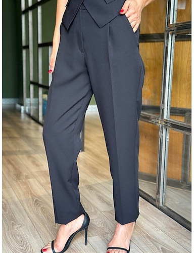 Mujer Fresco Perneras anchas pantalones de traje Chinos Moda Ropa de calle Casual Longitud total Media cintura Color sólido Bolsillo Confortable Cómodo Rígido Diario Oficina Trabajo Negro Plateado