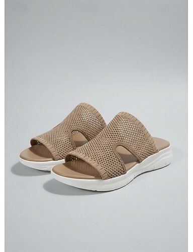 Sandalias de malla sin cordones para mujer: sandalias ligeras, transpirables y cómodas para uso informal y actividades al aire libre.