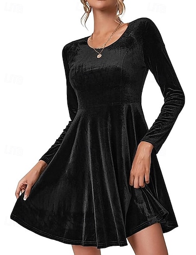 Mujer Mini vestido Vestido de terciopelo Vestido de Fiesta Vestido Cóctel Vestido de Columpio Elegante Moda Moderno Fiesta Fiesta de Cóctel Fiesta de Té Ajuste regular Plano Manga Larga Cuello Barco