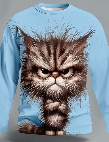 Hombre Animal Gato Gracioso Camiseta Manga Larga Camiseta Impresión 3D Cuello Barco Camisa Moda Básico Casual Diario Calle Azul Piscina Negro Morado Verano Primavera Ropa S M L XL XXL XXXL