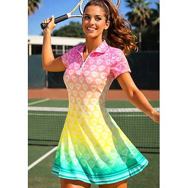 Mujer Corazón Geométrico Degradado Cuadros A Cuadros Vestido de tenis Vestido deportivo Manga Corta Estampado Transpirable Tenis Golf Bádminton Cuello Cuello de polo Vestidos Amarillo Claro Ropa de