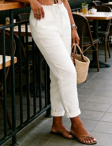 Mujer Pantalones de lino Pantalones Pantalones de verano Pantalones de playa Vacaciones Moda Casual Longitud total Alta cintura Plano Bolsillo Diseño de cordón elástico Comodidad Suave Transpirable