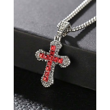 Collar con colgante de cruz de aleación para hombre, ideal como regalo de Navidad. Multicolor, con diseño de cristal brillante. Un accesorio elegante para fiestas navideñas y ocasiones informales.