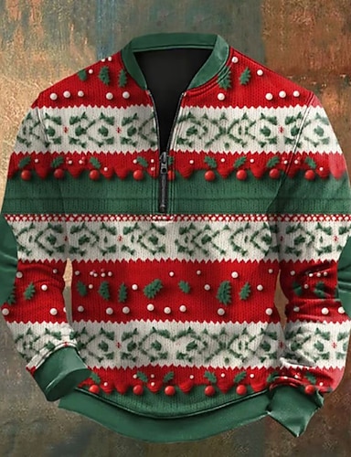 Navidad Hombre Copo Estampado Sudadera con cremallera de un cuarto Sudaderas Manga Larga Camisa de entrenamiento Media cremallera retro de la vendimia Print Festivos Noche Estampado Otoño Invierno