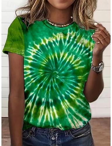 Mujer Camiseta Camiseta superior Estampado Tie-dye Moda Elegante Casual Manga Corta Cuello Barco Tops regulares Diario Noche Fin de semana Azul cielo Verano Primavera