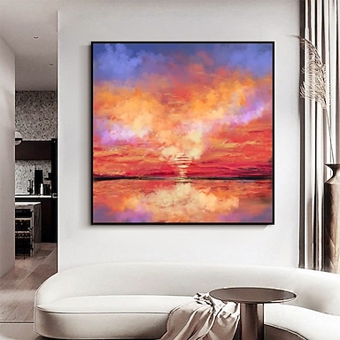 Pintura al óleo pintada a colgar Pintada a mano Cuadrado Abstracto Paisaje Clásico Moderno Sin marco interior (sin marco)