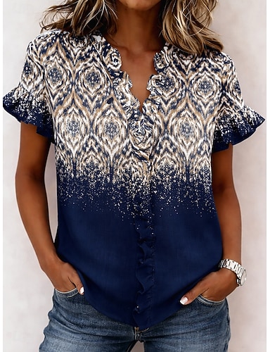 Mujer Camisa Sayo Volante Ombre Graphic Abstracto Elegante Moda Diario Manga Corta Escote en Pico Tops regulares Casual Diario Azul Piscina Rosa Azul Marino Morado Verde Trébol Verano Primavera