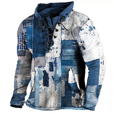 Hombre Bloque de color Retazos Estampados Sudaderas Sudadera Pull-over Manga Larga Camisa de entrenamiento Escote Chino Diario Clásico Casual Impresión 3D Festivos Noche Ropa de calle Correa Estampado