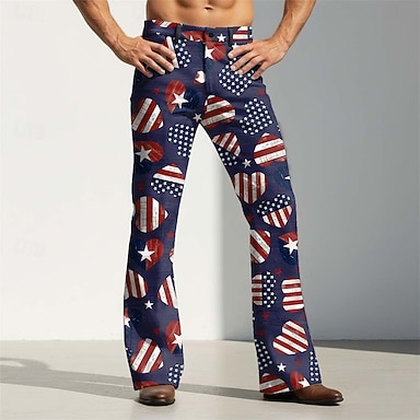 Hombre Bandera de EE. UU. Patriótico 250 aniversario de los Estados Unidos Pantalones Pantalones de discoteca Pantalones de campana de los años 60 y 70 Media cintura retro de la vendimia Casual