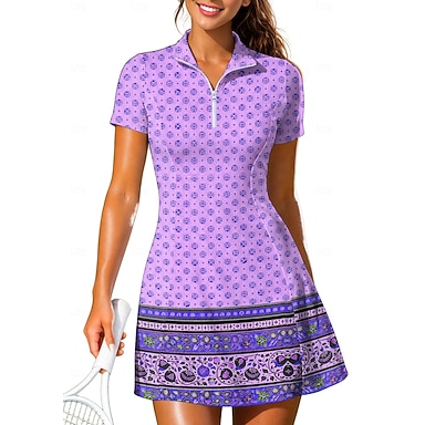 Mujer Geométrico Rayas Bohemio Vestido de tenis Vestido deportivo Manga Corta Estampado Transpirable Tenis Golf Bádminton Cuello Cuello de polo Vestidos Violeta Ropa de tenis