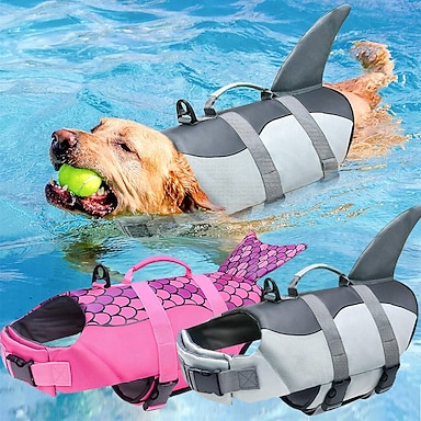 Chaleco salvavidas de seguridad para perros con diseño de tiburón, chaleco salvavidas para perros con diseño de sirena para nadar con flotabilidad superior y asas de rescate para piscina, playa y