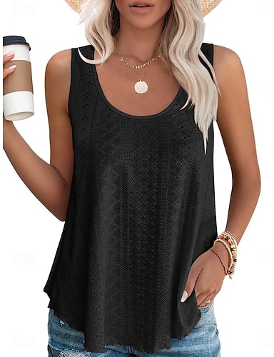 Mujer Camiseta sin mangas Ojal Plano Moda Elegante Clásico Sin Mangas Escote en U Tops regulares Diario Noche Fin de semana Negro Blanco Amarillo Rosa Morado Verano