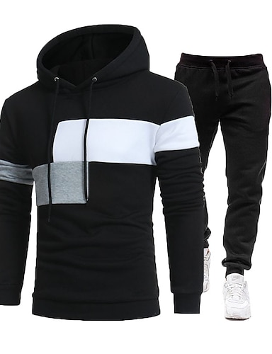 Hombre Tracksuit Camisa de gimnasia Pantalones de gimnasio Conjunto de Ropa Fitness Con Capucha Deporte Diario Festivos Secado rápido Suave Bloque de color Negro Blanco Caqui Ropa de Deporte Ropa de