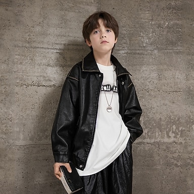 Niños Chico Chaqueta de cuero negro Chaqueta Ropa de calle Plano Manga Larga Cerrar IMPERMEABLE Paravientos: Abrigo Diario Moda Casual Negro Marrón Primavera Otoño 4-12 años