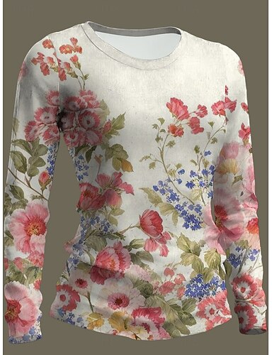 Mujer Camiseta Estampado Floral Graphic Plantas Moda Clásico Casual Manga Larga Cuello Barco Tops regulares Diario Fin de semana Blanco Amarillo Rojo Verano Primavera