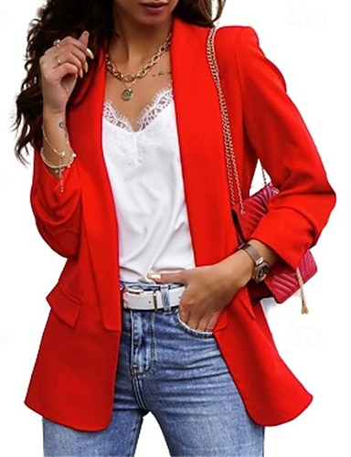 Mujer chaqueta Cómodo Bolsillo Botones Moda Plano Oficina Oficina / Carrera Botonadura Simple Regular Cuello Vuelto Ajuste regular Manga Larga Ropa de calle Negro Rosa Rosa Rojo Otoño Invierno
