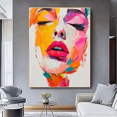 Pintura al óleo hecha a mano, lienzo, arte de pared, decoración, figuras abstractas, cara, dibujo a cuchillo para decoración del hogar, marco estirado, pintura colgante/pintura enrollada sin marco,