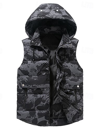 Hombre Chaleco acolchado Chaleco Vacaciones Diario Cita Moda Casual Invierno Bolsillo Poliéster Mantiene abrigado Cómodo Color sólido Color Camuflaje Cremallera Con Capucha Ajuste regular Negro Gris
