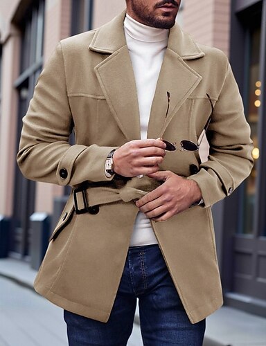Hombre Peacoat Gabardina Diario Vacaciones Otoño Invierno Poliéster Mantiene abrigado Suave Ropa de calle Ropa Moda Clásico Plano Bolsillo Diseño Botonadura Doble