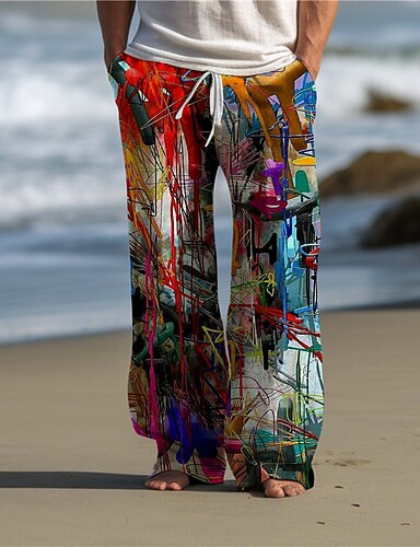 Bloque de color Pintada Abstracto Hombre Impresión 3D Pantalones Exterior Ropa Cotidiana Ropa de calle Poliéster Amarillo Morado Rojo S M L Media cintura Elasticidad Pantalones