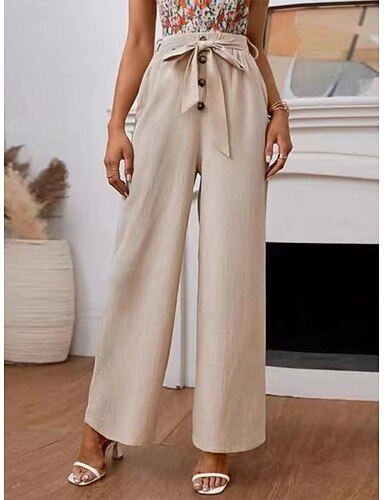 Mujer Lino de algodón sintético Chinos Pantalones de verano Vacaciones Moda Ropa de calle Longitud total Alta cintura Plano Bolsillo Cintura elástica Confortable Suave Cómodo Elástico Exterior