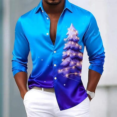 Navidad Hombre Árbol de Navidad Degradado de color Camisa Camisa de raso Camisa para Vestido Manga Larga Moda informal Exterior Fiesta Festivos Primavera Otoño Cuello Vuelto Impresión 3D Camisas con