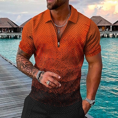 Hombre Geométrico Camisas polo hawaianas Camiseta de golf Manga Corta Camisas de polo Camisas con cuello Casual Ropa de playa Ropa de vacaciones Trajes de fiesta Impresión 3D Polo con cremallera de