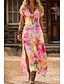 Vestido de gala A-line largo hasta el suelo elegantes vestidos de fiesta sin mangas tirantes finos prom fiesta de noche sin espalda con estampado floral pliegues abertura