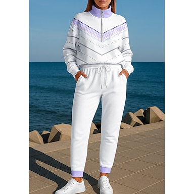 Mujer Sudadera Tracksuit Chándal de 2 piezas Holgado Geométrico Trajes de Yoga Otoño Invierno Negro Azul Vocación Al Aire Libre Viaje Ligero Moda Manga Larga Deporte Ropa de Deporte Microelástico