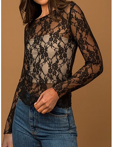Mujer Blusa Tops de encaje Encaje Retazos Floral Graphic Plano Elegante Sensual Moderno Manga Larga Escote Barco Hombros Caídos Tops regulares Diario Festivos Noche Negro Blanco Verano Primavera