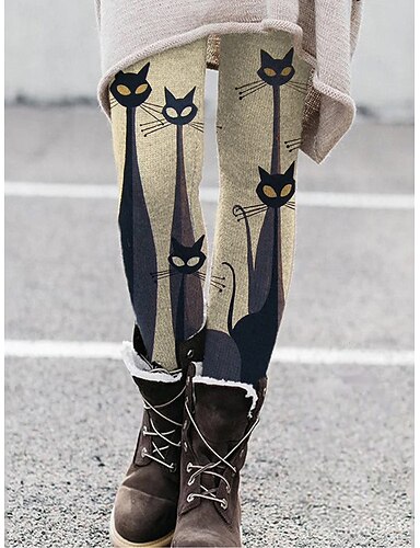Mujer Normal Medias Pantalones Polainas Leggings cómodos Moda Casual Hasta el Tobillo Alta cintura Gato Estampado Levantamiento de tope Comodidad Control de barriga Alta elasticidad Víspera de Todos