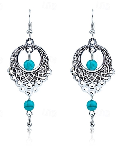 Pendientes colgantes florales bohemios para mujer: pendientes colgantes de estilo occidental con cuentas turquesas para festivales de verano, fiestas y atuendos cotidianos.