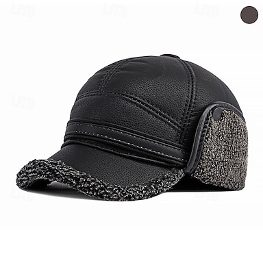 Gorro de invierno para hombre de piel sintética con orejeras plegables: elegante, cálido y cómodo para el frío; perfecto para actividades al aire libre y para uso diario.