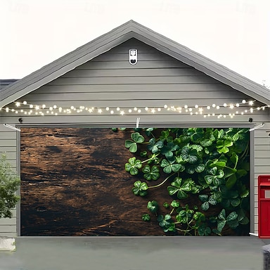 Día de San Patricio tapiz Cubierta de puerta de garaje Gran colgante Trébol Estilo lindo 3D Fiesta Al Aire Libre Vacaciones Fondos de disparos Yarda Decoración del hogar