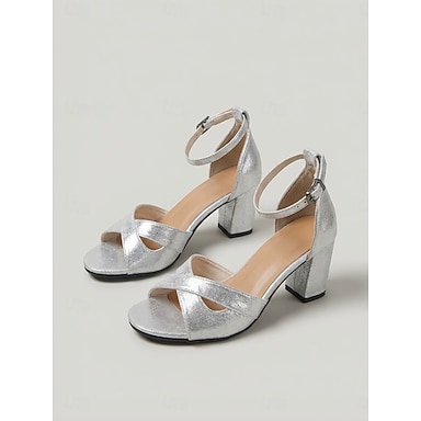 Sandalias metálicas de tacón de bloque para mujer, zapatos elegantes de vestir con tira al tobillo y punta abierta para fiestas en el jardín o bodas. &eventos al aire libre